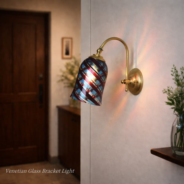 赤とライトブルーのコントラストが鮮やかなベネチアングラスブラケットランプです。