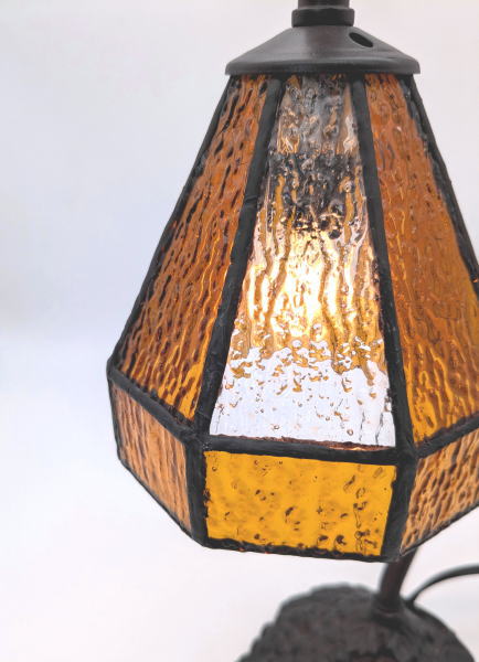 繊細なデザインの八角形の円すい型ガラスシェードを採用した、上品なステンドグラスライトです。