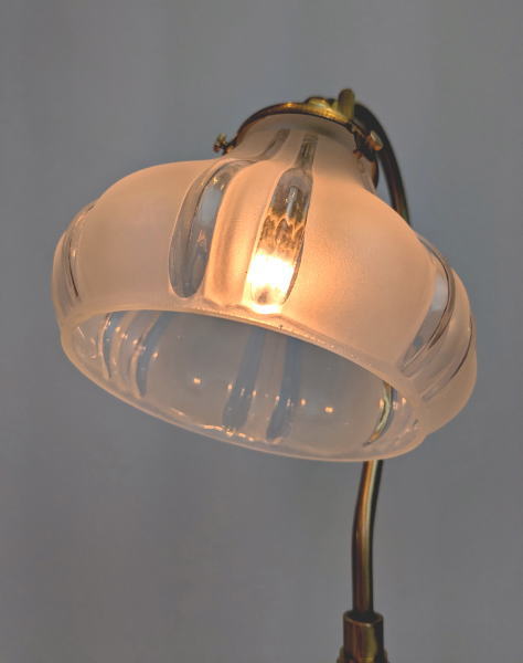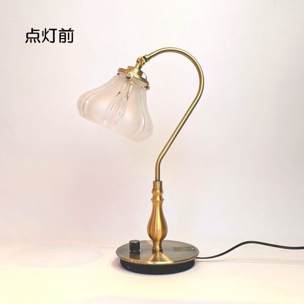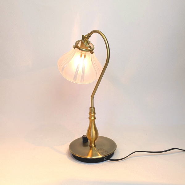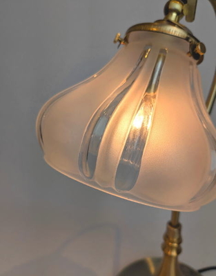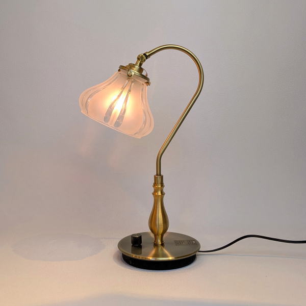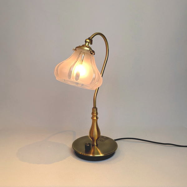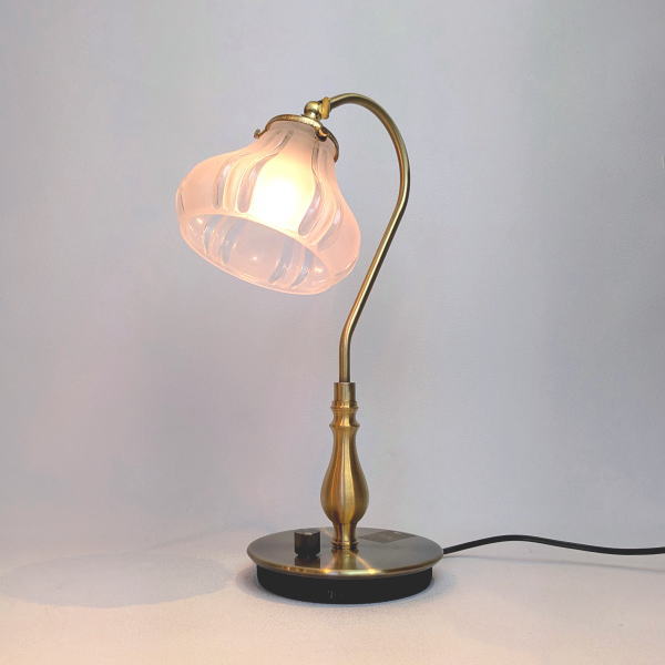 優雅なスワン型灯具に、クリアガラスとフロストガラスを組み合わせたシェードが特徴のテーブルライトです。