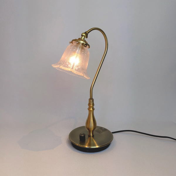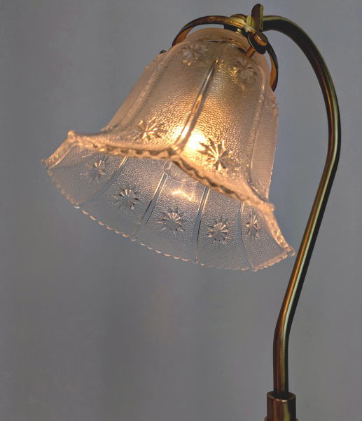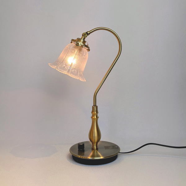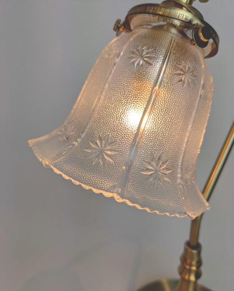 裾広がりの流れるようなフォルムのガラスに、星型のカットをあしらった、とても可愛らしいテーブルライトです。