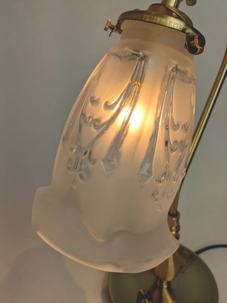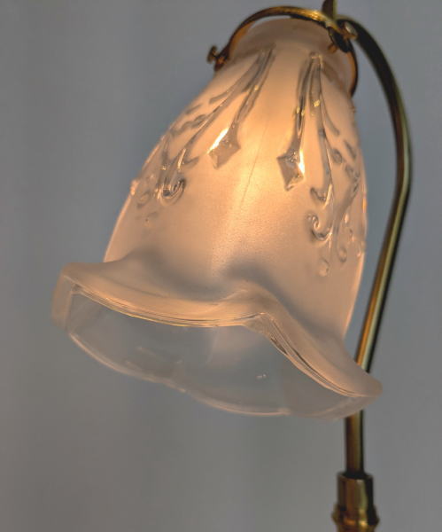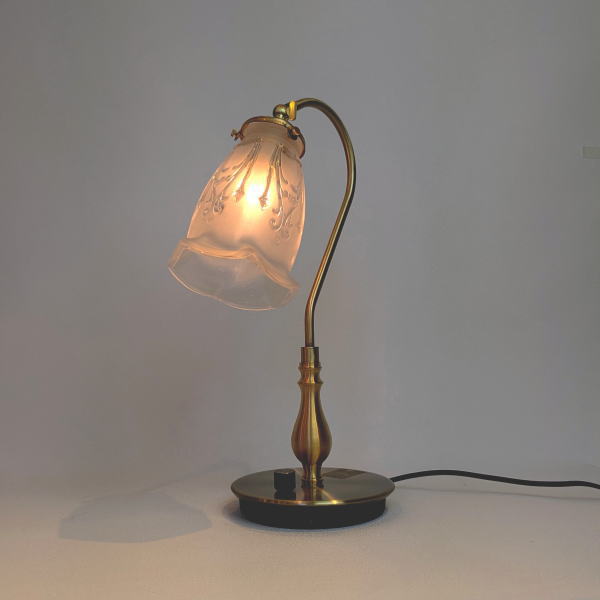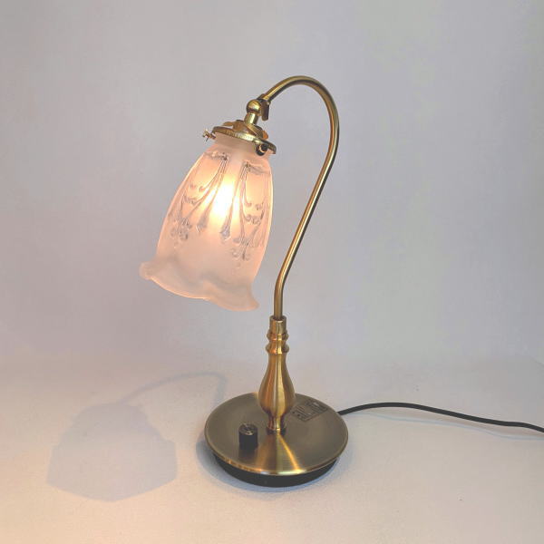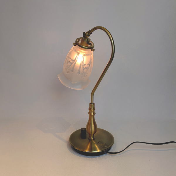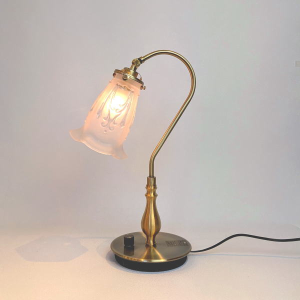優雅なスワン型灯具に、フロストガラス仕様のシェードが特徴のテーブルライトです。 やわらかな質感が、上品で落ち着いた灯りをお部屋に届けます。
