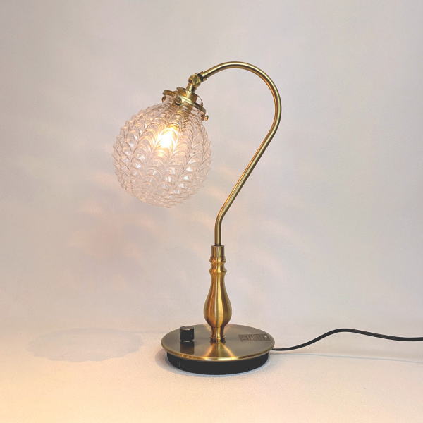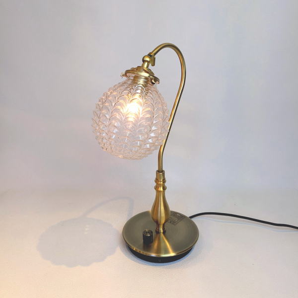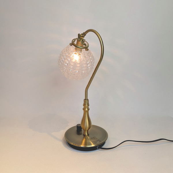 優雅なスワン型灯具に、繊細なカットガラスのシェードが光を美しく反射し、クラシカルで華やかな印象を与えるテーブルライトです。