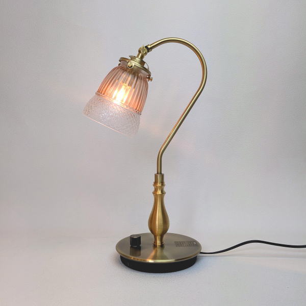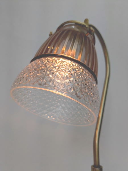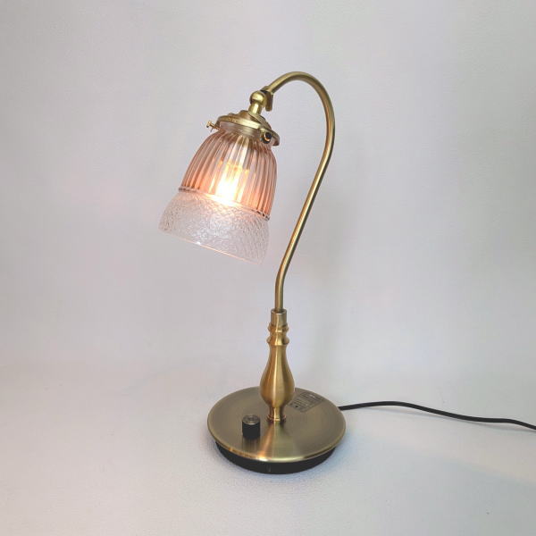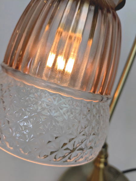 2種類のガラスを切り替えてあしらったシェードが印象的なテーブルライトです。