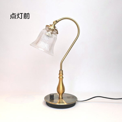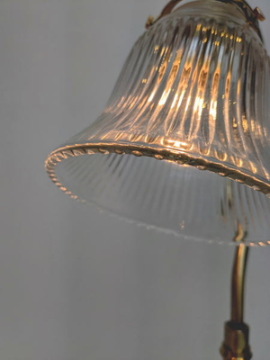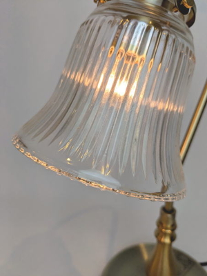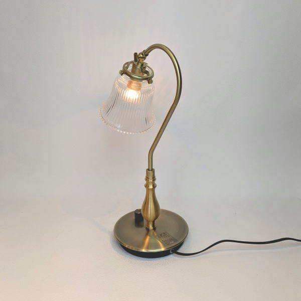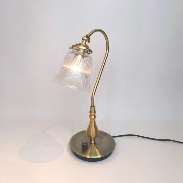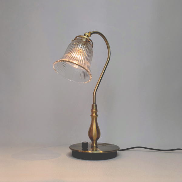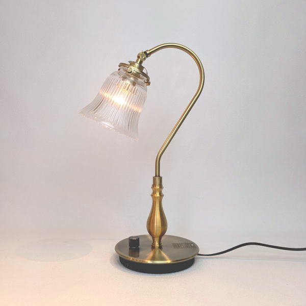 縦縞に流れるようなカットが印象的な、シンプルなデザインのテーブルライトです。