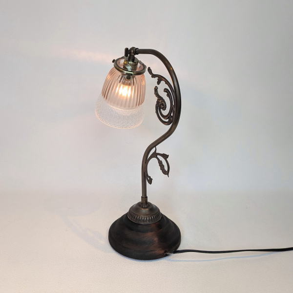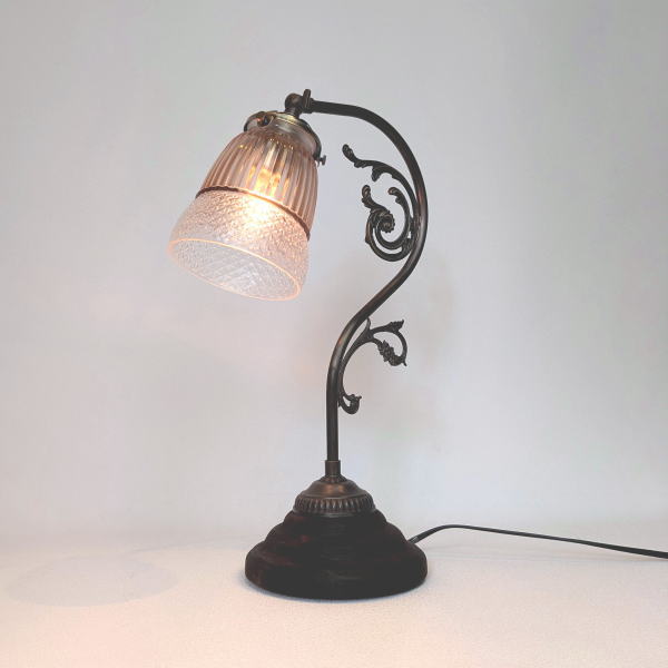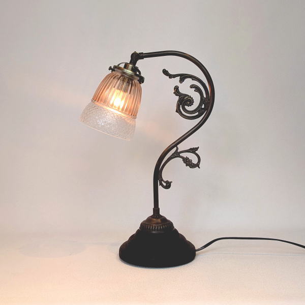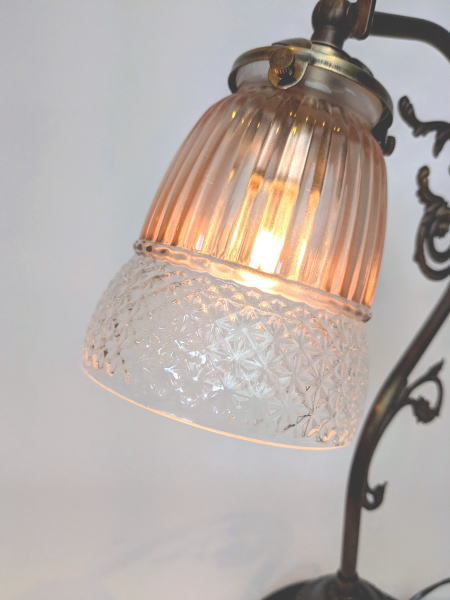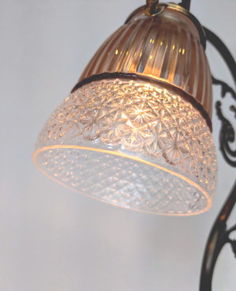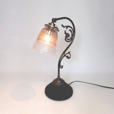 2種類のガラスを切り替えてあしらったシェードが印象的なテーブルライトです。