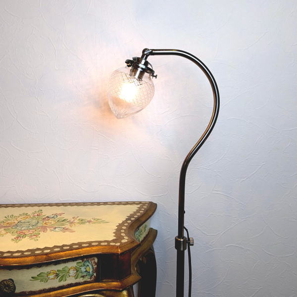 果物のようにころんとしたフォルムのシェードに、繊細なカットを施したテフロアライトです。
