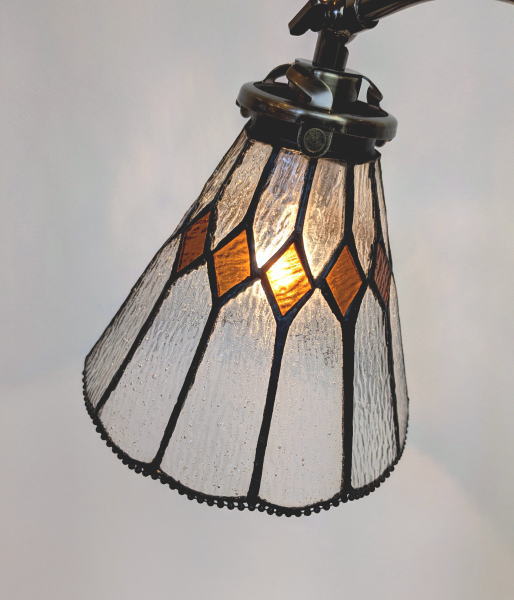 オレンジ色の小さなひし形ガラスが、温かさと華やかさを引き立てます。