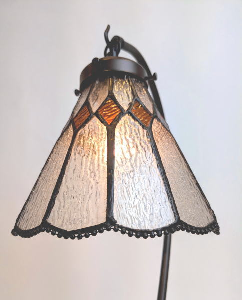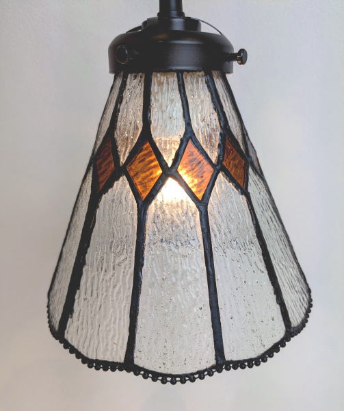 オレンジ色の小さなひし形ガラスが、温かさと華やかさを引き立てます。