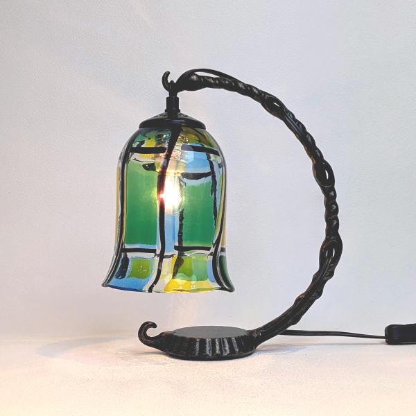 透明感あふれるベネチアングラステーブルランプです。ブルーとグリーン、イエローの爽やかな雰囲気です。
