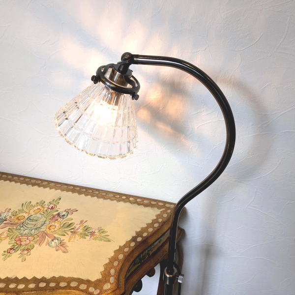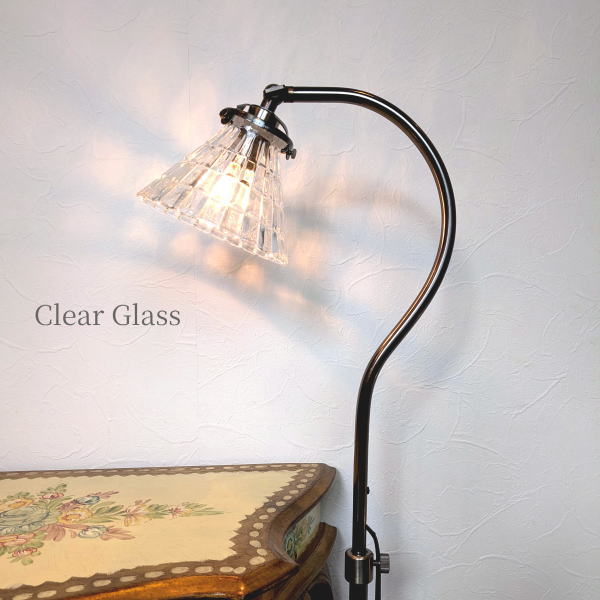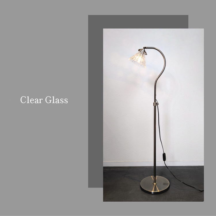 優雅なスワン型灯具に、華やかなカットが施されたクリアガラスを使用したフロアライトです。 光を受けるたびにきらめき、お部屋を上品に彩ります。