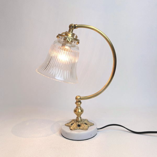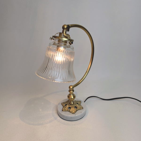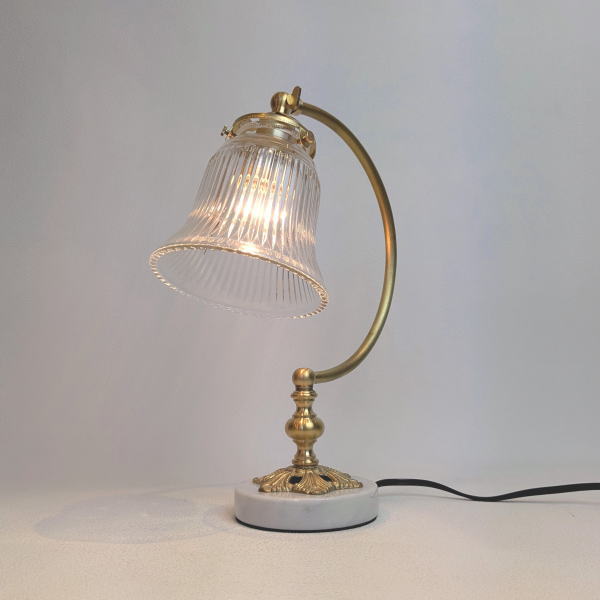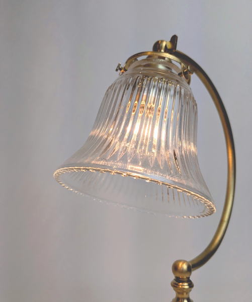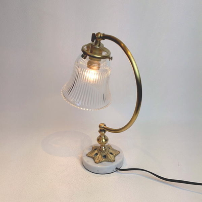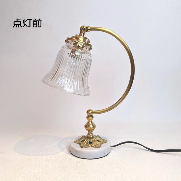 縦縞に流れるようなカットが印象的な、シンプルなデザインのテーブルライトです。 点灯時には光を美しくきらめかせ、上品で華やかな輝きを演出します。